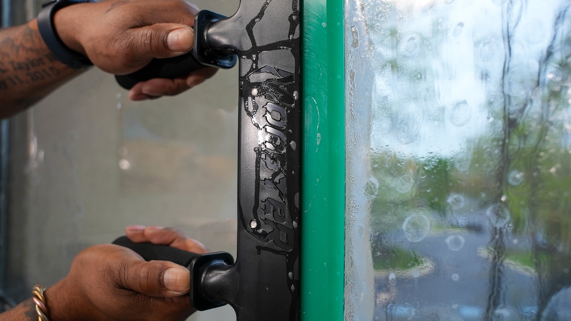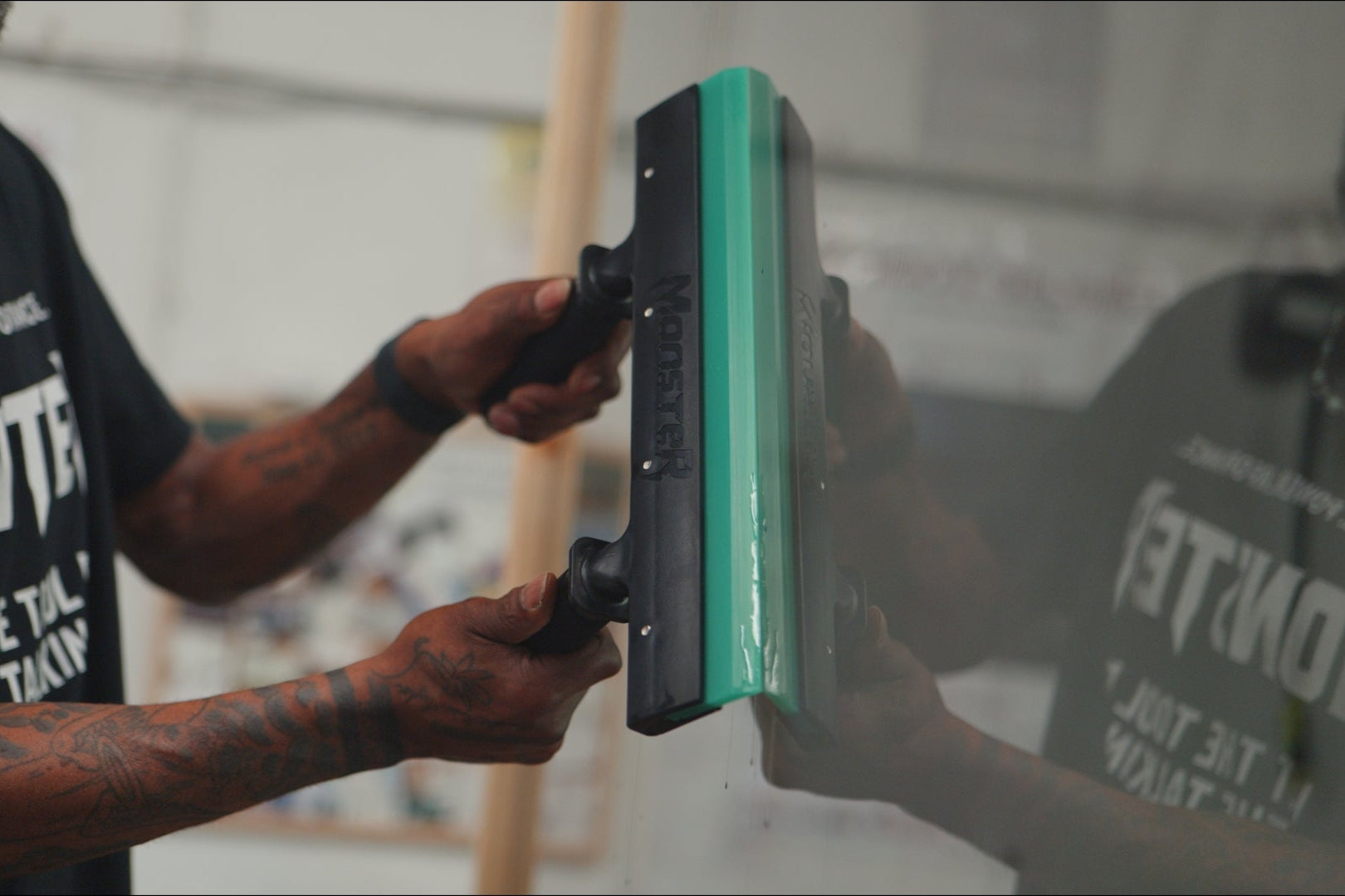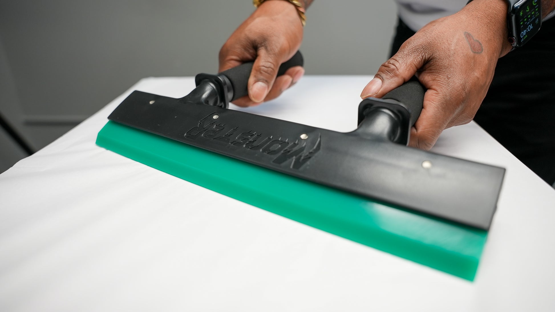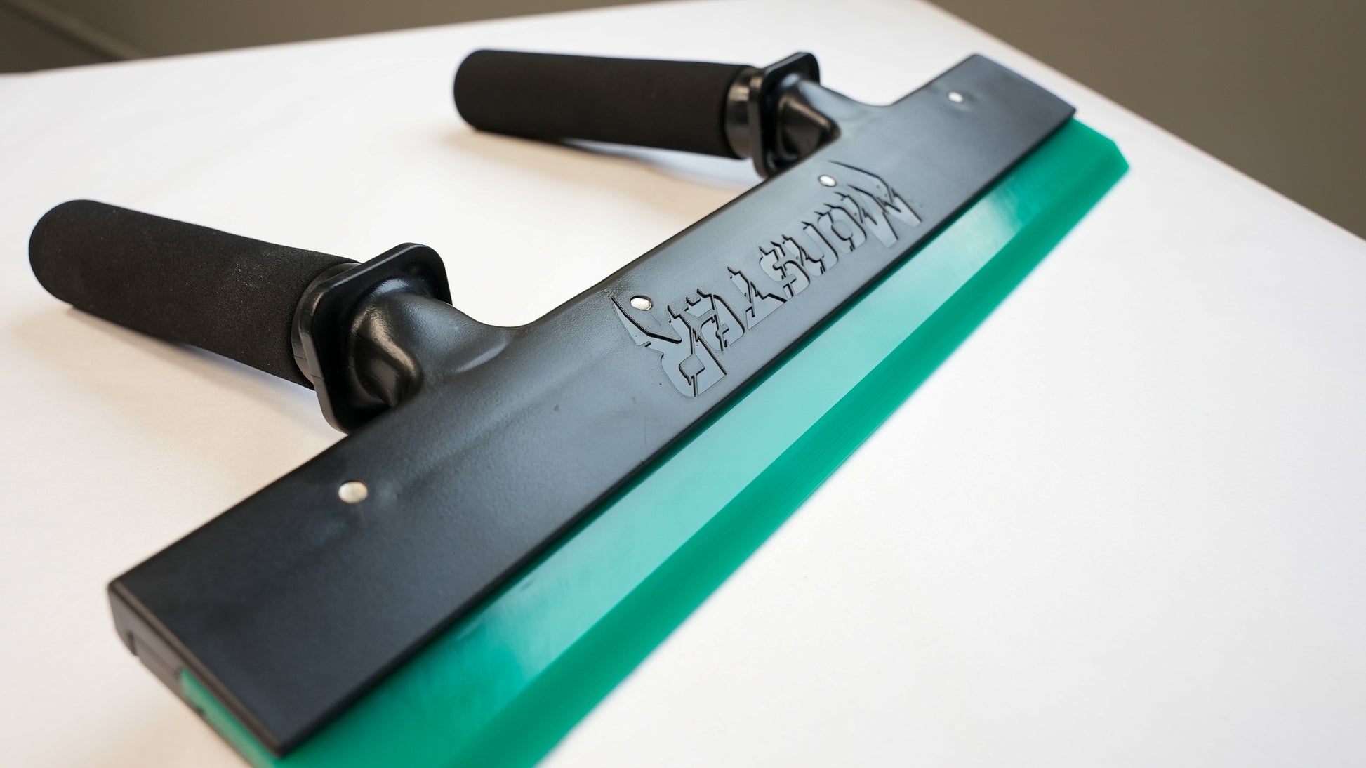 Experience improved efficiency in your tinting projects with the Monster Dual Handle & 14" Squeezy. The 14" blade length surpasses conventional 8" blades, getting out all of the water from underneath the film quickly and evenly to ensure optimal adhesion of the tint. The dual handles enable faster installation, saving time and costs, while the extra dense blade also allows for the application of safety and security films (up to 8 miles)